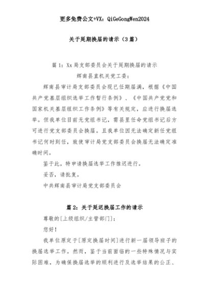 【七哥公文】2025年:(3篇)关于延期换届的请示+更多免费公文+VX:QiGeGongWen2024+更多免费公文+VX:QiGeGongWen2024