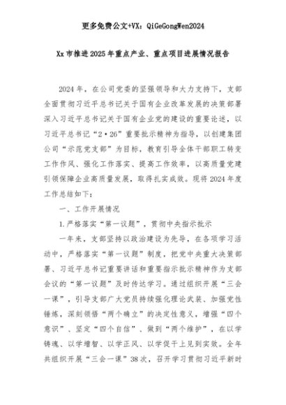 【七哥公文】2025年:Xx市推进2025年重点产业、重点项目进展情况报告+更多免费公文+VX:QiGeGongWen2024+更多免费公文+VX:QiGeGongWen2024