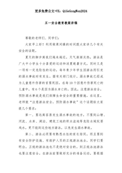 【七哥公文】2025年:五一安全教育教案讲稿+更多免费公文+VX:QiGeGongWen2024+更多免费公文+VX:QiGeGongWen2024