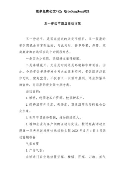 【七哥公文】2025年:五一劳动节酒店活动方案+更多免费公文+VX:QiGeGongWen2024+更多免费公文+VX:QiGeGongWen2024