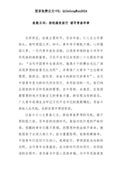 【七哥公文】2025年:致敬五四:扬帆踏浪前行 谱写青春华章+更多免费公文+VX:QiGeGongWen2024+更多免费公文+VX:QiGeGongWen2024