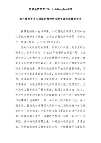 【七哥公文】2025年:深入贯彻中央八项规定精神学习教育读书班辅导报告+更多免费公文+VX:QiGeGongWen2024+更多免费公文+VX:QiGeGongWen2024