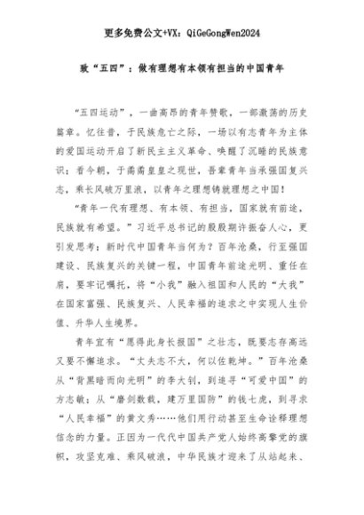 【七哥公文】2025年:致“五四”:做有理想有本领有担当的中国青年+更多免费公文+VX:QiGeGongWen2024+更多免费公文+VX:QiGeGongWen2024