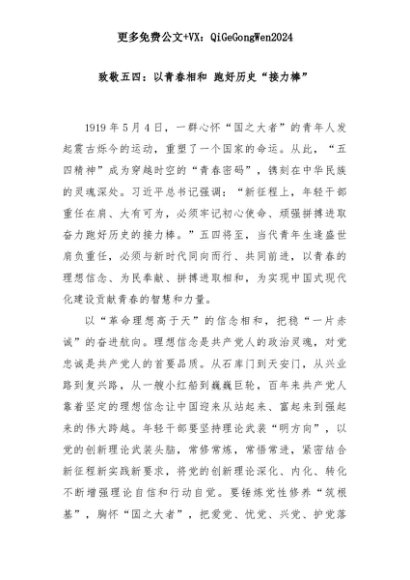 【七哥公文】2025年:致敬五四:以青春相和 跑好历史“接力棒”+更多免费公文+VX:QiGeGongWen2024+更多免费公文+VX:QiGeGongWen2024