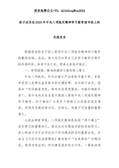 【七哥公文】2025年:班子成员在 2025 年中央八项规定精神学习教育读书班上的交流发言+更多免费公文+VX:QiGeGongWen2024+更多免费公文+VX:QiGeGongWen2024