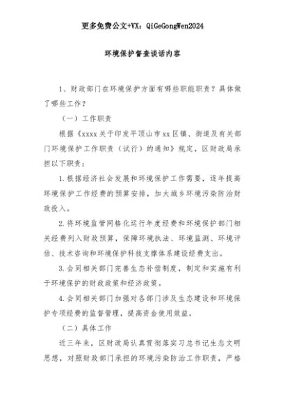 【七哥公文】2025年:环境保护督查谈话内容+更多免费公文+VX:QiGeGongWen2024+更多免费公文+VX:QiGeGongWen2024