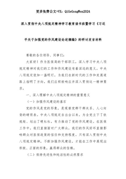 【七哥公文】2025年:深入贯彻中央八项规定精神学习教育读书班暨学习《总书记关于加强党的作风建设论述摘编》的研讨发言材料+更多免费公文+VX:QiGeGongWen2024+更多免费公文+VX:QiGeGongWen2024