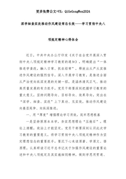 【七哥公文】2025年:深学细查实改推动作风建设常态长效——学习贯彻中央八项规定精神心得体会+更多免费公文+VX:QiGeGongWen2024+更多免费公文+VX:QiGeGongWen2024