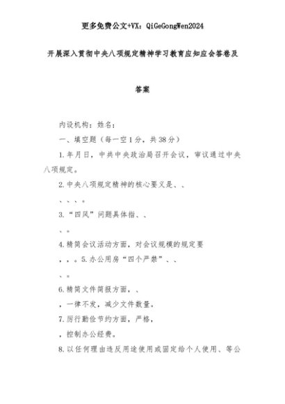 【七哥公文】2025年:开展深入贯彻中央八项规定精神学习教育应知应会答卷及答案+更多免费公文+VX:QiGeGongWen2024+更多免费公文+VX:QiGeGongWen2024