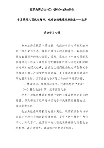 【七哥公文】2025年:学思践悟八项规定精神,砥砺奋进锻造政府劲旅 —— 政府系统学习心得+更多免费公文+VX:QiGeGongWen2024+更多免费公文+VX:QiGeGongWen2024