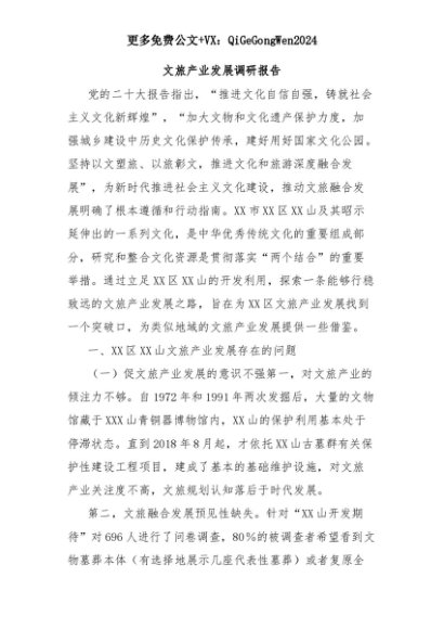 【七哥公文】2025年:文旅产业发展调研报告+更多免费公文+VX:QiGeGongWen2024+更多免费公文+VX:QiGeGongWen2024