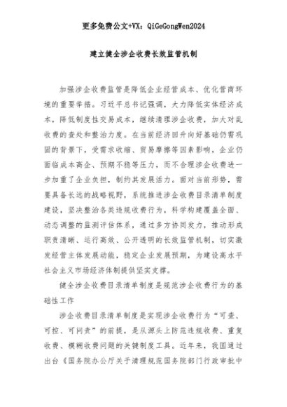 【七哥公文】2025年:建立健全涉企收费长效监管机制+更多免费公文+VX:QiGeGongWen2024+更多免费公文+VX:QiGeGongWen2024