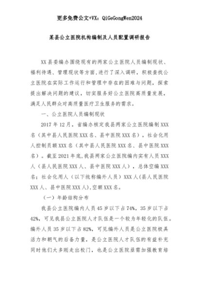 【七哥公文】2025年:某县公立医院机构编制及人员配置调研报告+更多免费公文+VX:QiGeGongWen2024+更多免费公文+VX:QiGeGongWen2024