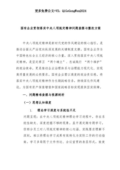 【七哥公文】2025年:国有企业贯彻落实中央八项规定精神问题查摆与整改方案+更多免费公文+VX:QiGeGongWen2024+更多免费公文+VX:QiGeGongWen2024