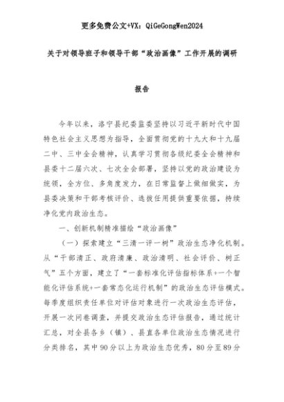 【七哥公文】2025年:关于对领导班子和领导干部“政治画像”工作开展的调研报告+更多免费公文+VX:QiGeGongWen2024+更多免费公文+VX:QiGeGongWen2024