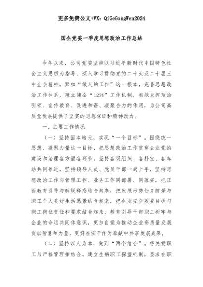 【七哥公文】2025年:国企党委一季度思想政治工作总结+更多免费公文+VX:QiGeGongWen2024+更多免费公文+VX:QiGeGongWen2024