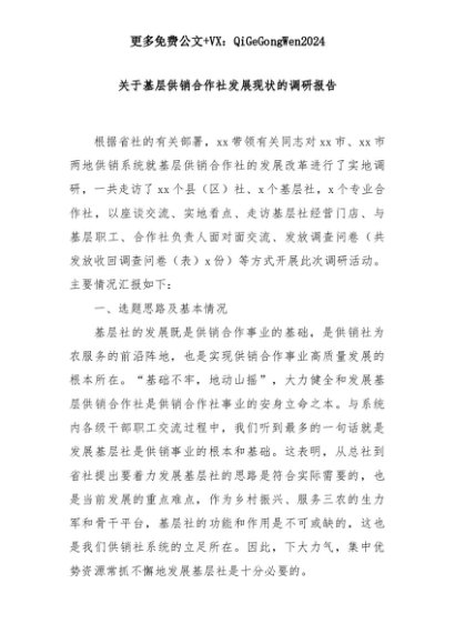 【七哥公文】2025年:关于基层供销合作社发展现状的调研报告+更多免费公文+VX:QiGeGongWen2024+更多免费公文+VX:QiGeGongWen2024