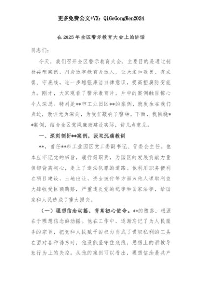 【七哥公文】2025年:在2025年全区警示教育大会上的讲话+更多免费公文+VX:QiGeGongWen2024+更多免费公文+VX:QiGeGongWen2024