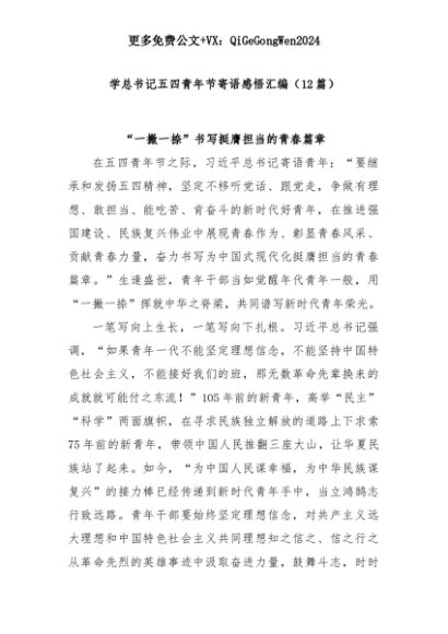 【七哥公文】2025年:(12篇)学总书记五四青年节寄语感悟汇编+更多免费公文+VX:QiGeGongWen2024+更多免费公文+VX:QiGeGongWen2024
