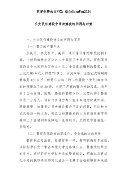 【七哥公文】2025年:公安队伍建设中亟待解决的问题与对策+更多免费公文+VX:QiGeGongWen2024+更多免费公文+VX:QiGeGongWen2024
