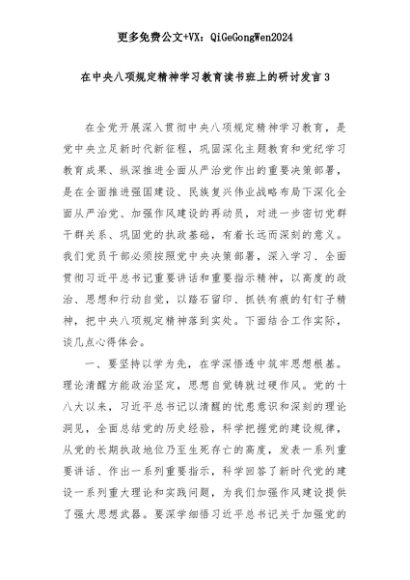 【七哥公文】2025年:在中央八项规定精神学习教育读书班上的研讨发言3+更多免费公文+VX:QiGeGongWen2024+更多免费公文+VX:QiGeGongWen2024