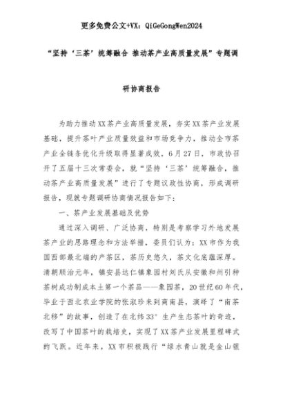 【七哥公文】2025年:“坚持‘三茶’统筹融合 推动茶产业高质量发展”专题调研协商报告+更多免费公文+VX:QiGeGongWen2024+更多免费公文+VX:QiGeGongWen2024