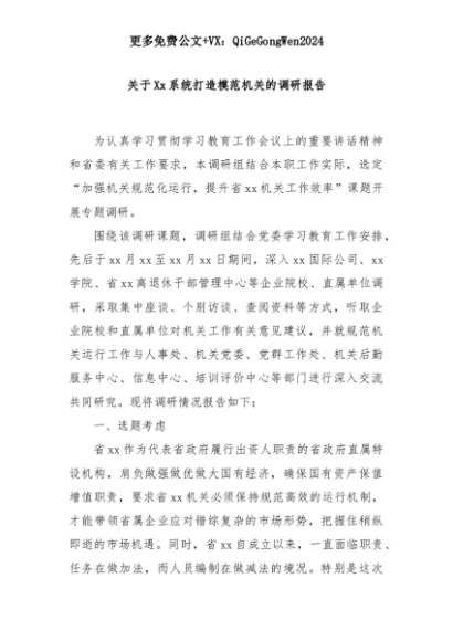 【七哥公文】2025年:关于Xx系统打造模范机关的调研报告+更多免费公文+VX:QiGeGongWen2024+更多免费公文+VX:QiGeGongWen2024