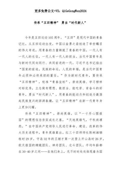 【七哥公文】2025年:传承“五四精神” 勇当“时代新人”+更多免费公文+VX:QiGeGongWen2024+更多免费公文+VX:QiGeGongWen2024