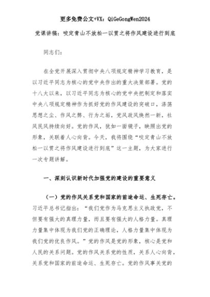 【七哥公文】2025年:党课讲稿:咬定青山不放松一以贯之将作风建设进行到底+更多免费公文+VX:QiGeGongWen2024+更多免费公文+VX:QiGeGongWen2024