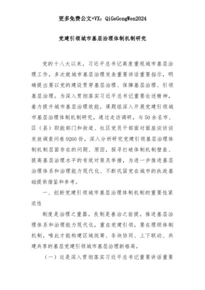 【七哥公文】2025年:党建引领城市基层治理体制机制研究+更多免费公文+VX:QiGeGongWen2024+更多免费公文+VX:QiGeGongWen2024