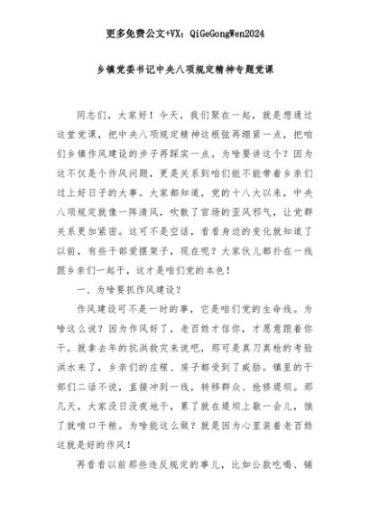 【七哥公文】2025年:乡镇党委书记中央八项规定精神专题党课+更多免费公文+VX:QiGeGongWen2024+更多免费公文+VX:QiGeGongWen2024