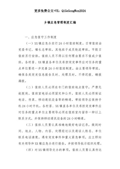 【七哥公文】2025年:乡镇应急管理制度汇编+更多免费公文+VX:QiGeGongWen2024+更多免费公文+VX:QiGeGongWen2024