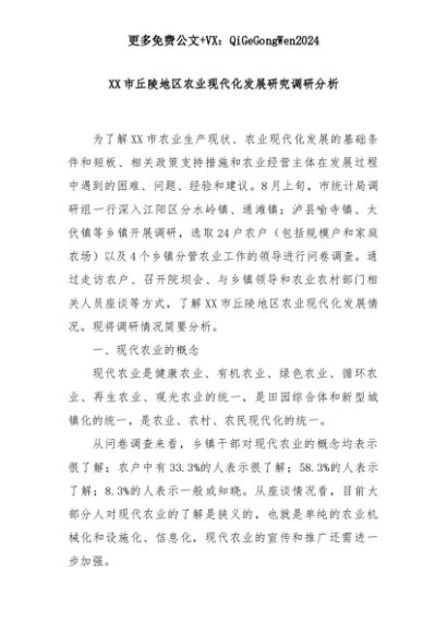 【七哥公文】2025年:XX市丘陵地区农业现代化发展研究调研分析+更多免费公文+VX:QiGeGongWen2024+更多免费公文+VX:QiGeGongWen2024