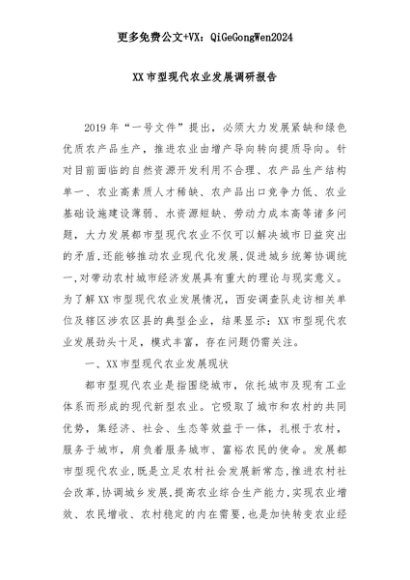【七哥公文】2025年:XX市型现代农业发展调研报告+更多免费公文+VX:QiGeGongWen2024+更多免费公文+VX:QiGeGongWen2024