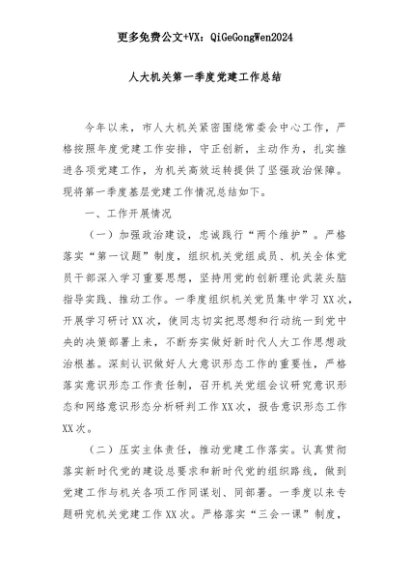 【七哥公文】2025年:人大机关第一季度党建工作总结+更多免费公文+VX:QiGeGongWen2024+更多免费公文+VX:QiGeGongWen2024