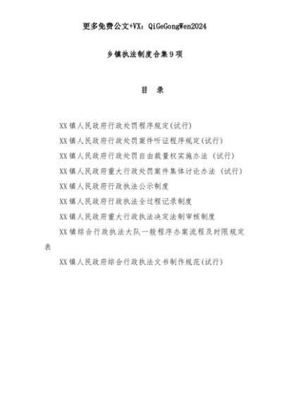 【七哥公文】2025年:乡镇执法制度合集9项+更多免费公文+VX:QiGeGongWen2024+更多免费公文+VX:QiGeGongWen2024