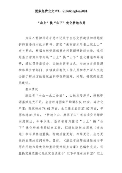 【七哥公文】2025年:“山上”换“山下”优化耕地布局+更多免费公文+VX:QiGeGongWen2024+更多免费公文+VX:QiGeGongWen2024