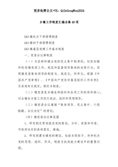 【七哥公文】2025年:乡镇工作制度汇编合集49项+更多免费公文+VX:QiGeGongWen2024+更多免费公文+VX:QiGeGongWen2024