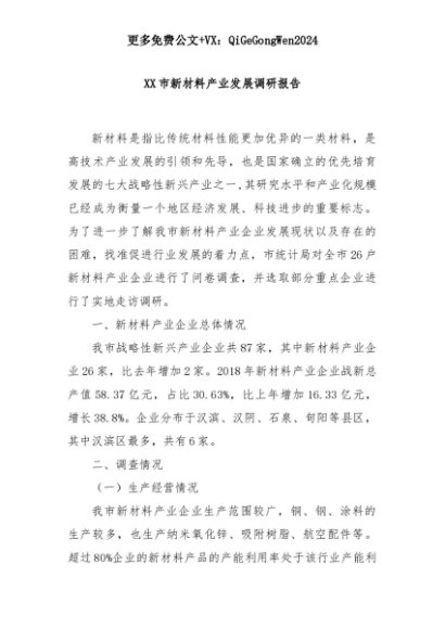 【七哥公文】2025年:XX市新材料产业发展调研报告+更多免费公文+VX:QiGeGongWen2024+更多免费公文+VX:QiGeGongWen2024