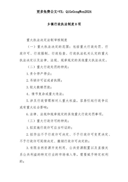 【七哥公文】2025年:乡镇行政执法制度8项+更多免费公文+VX:QiGeGongWen2024+更多免费公文+VX:QiGeGongWen2024