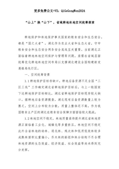 【七哥公文】2025年:“山上”换“山下”,省域耕地林地空间统筹探索+更多免费公文+VX:QiGeGongWen2024+更多免费公文+VX:QiGeGongWen2024