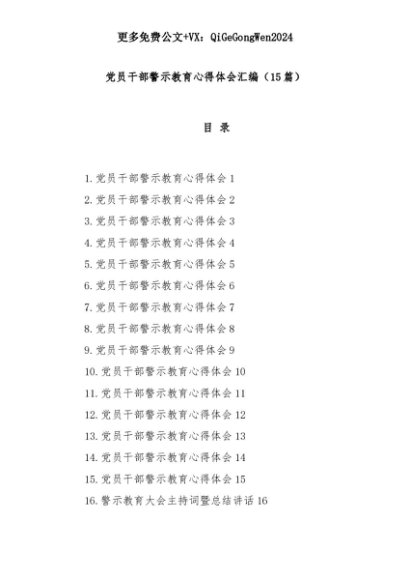 【七哥公文】2025年:(16篇)党员干部警示教育心得体会汇编+更多免费公文+VX:QiGeGongWen2024+更多免费公文+VX:QiGeGongWen2024