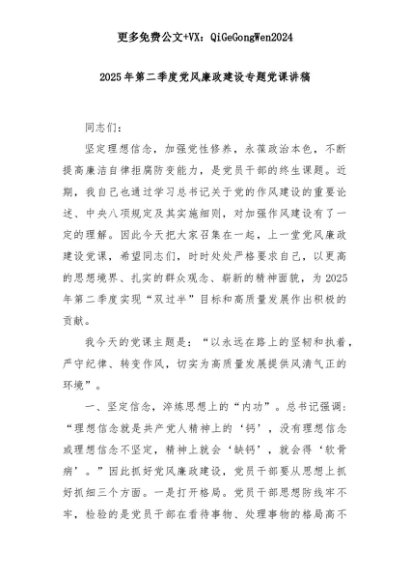 【七哥公文】2025年:2025年第二季度党风廉政建设专题党课讲稿+更多免费公文+VX:QiGeGongWen2024+更多免费公文+VX:QiGeGongWen2024