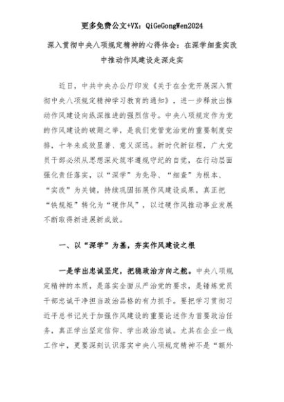 【七哥公文】2025年:深入贯彻中央八项规定精神的心得体会:在深学细查实改中推动作风建设走深走实+更多免费公文+VX:QiGeGongWen2024+更多免费公文+VX:QiGeGongWen2024