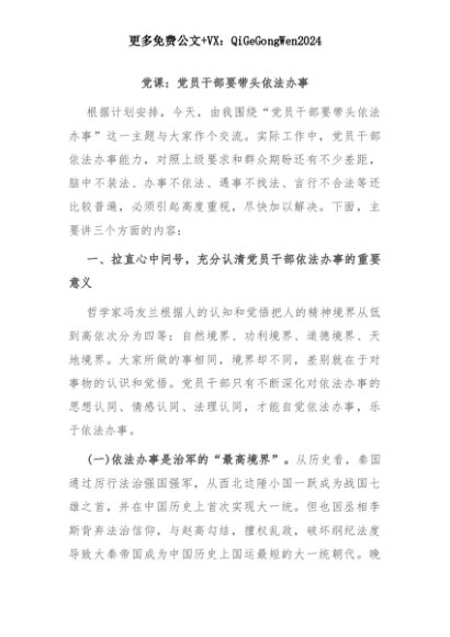 【七哥公文】2025年:党课:党员干部要带头依法办事+更多免费公文+VX:QiGeGongWen2024+更多免费公文+VX:QiGeGongWen2024