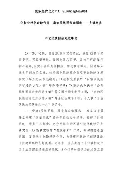 【七哥公文】2025年:守初心担使命敢作为 奏响民族团结幸福曲——乡镇党委书记民族团结先进事迹+更多免费公文+VX:QiGeGongWen2024+更多免费公文+VX:QiGeGongWen2024