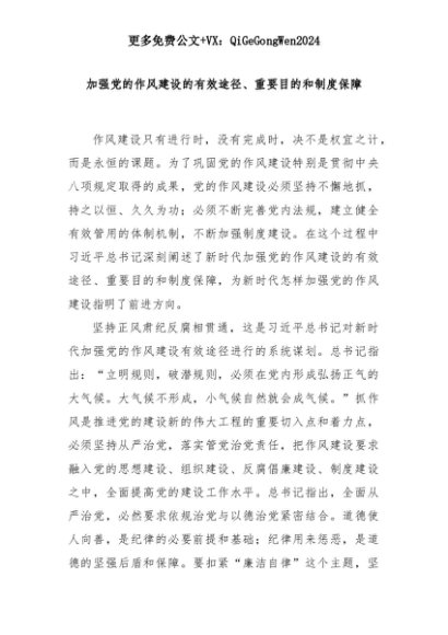 【七哥公文】2025年:加强党的作风建设的有效途径、重要目的和制度保障+更多免费公文+VX:QiGeGongWen2024+更多免费公文+VX:QiGeGongWen2024