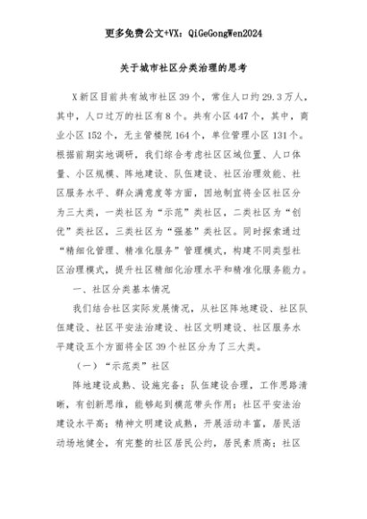 【七哥公文】2025年:关于城市社区分类治理的思考+更多免费公文+VX:QiGeGongWen2024+更多免费公文+VX:QiGeGongWen2024