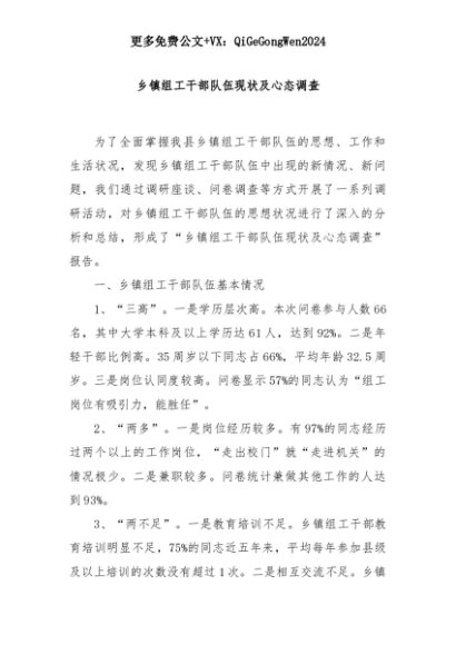 【七哥公文】2025年:乡镇组工干部队伍现状及心态调查+更多免费公文+VX:QiGeGongWen2024+更多免费公文+VX:QiGeGongWen2024