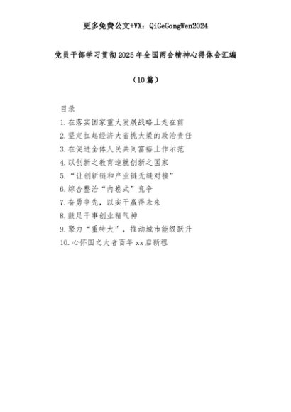 【七哥公文】2025年:(10篇)党员干部学习贯彻2025年全国两会精神心得体会汇编+更多免费公文+VX:QiGeGongWen2024+更多免费公文+VX:QiGeGongWen2024
